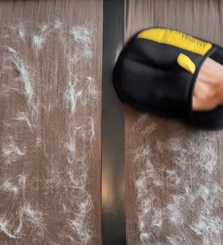 Amikor megtelt szőrrel, csak húzd le a felgyűlt réteget egy mozdulattal — a kesztyű azonnal újra használatra kész.